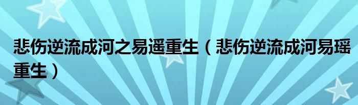 大家好,小晋来为大家解答以下问题,关于悲伤逆流成河之易遥重生,悲伤逆流成河易瑶重生很多人还不知道,今天让我们一起来看看吧!