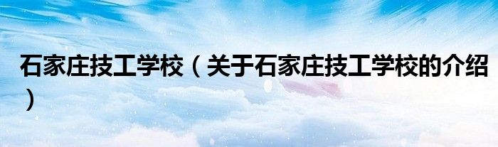 1、国家重点技工学校河北省石家庄市高级技工学校是一所全日制、综合性、多功能的国办职业院校。