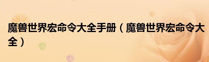 关于魔兽世界宏命令大全手册,魔兽世界宏命令大全这个很多人还不知道,今天菲菲来为大家解答以上的问题,现在让我们一起来看看吧!