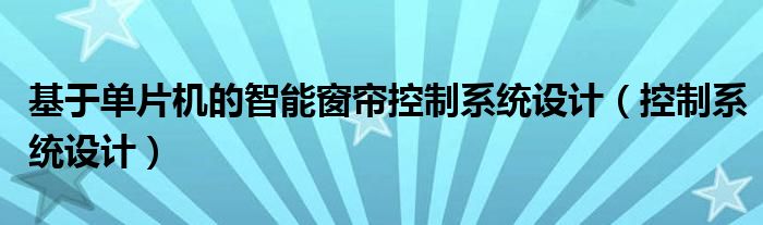 关于基于单片机的智能窗帘控制系统设计,控制系统设计这个很多人还不知道,今天菲菲来为大家解答以上的问题,现在让我们一起来看看吧!