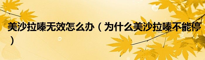 大家好,小晋来为大家解答以下问题,关于美沙拉嗪无效怎么办,为什么美沙拉嗪不能停很多人还不知道,今天让我们一起来看看吧!