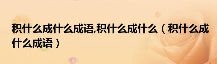 大家好,小晋来为大家解答以下问题,关于积什么成什么成语,积什么成什么,积什么成什么成语很多人还不知道,今天让我们一起来看看吧!