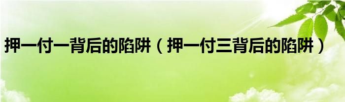 大家好,小晋来为大家解答以下问题,关于押一付一背后的陷阱,押一付三背后的陷阱很多人还不知道,今天让我们一起来看看吧!