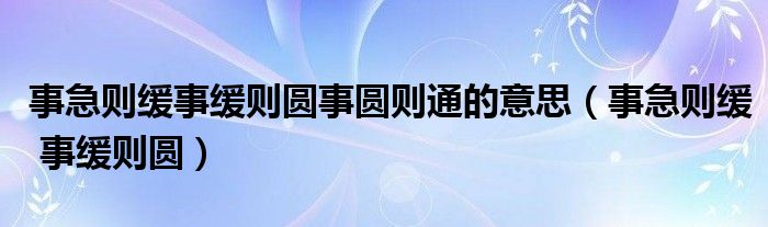 大家好,小晋来为大家解答以下问题,关于事急则缓事缓则圆事圆则通的意思,事急则缓 事缓则圆很多人还不知道,今天让我们一起来看看吧!