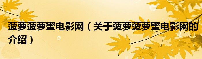 菠萝菠萝蜜电影网(关于菠萝菠萝蜜电影网的介绍)