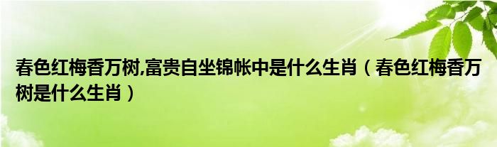 春色红梅香万树,富贵自坐锦帐中是什么生肖,春色红梅香万树是什么生肖这个很多人还不知道,小飞来为大家解答以上的问题。现在让我们一起来看看吧!