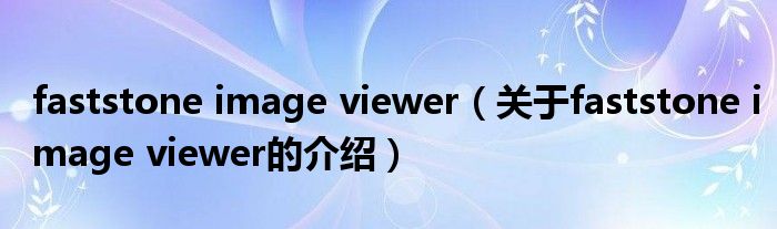 faststone image viewer(关于faststone image viewer的介绍)