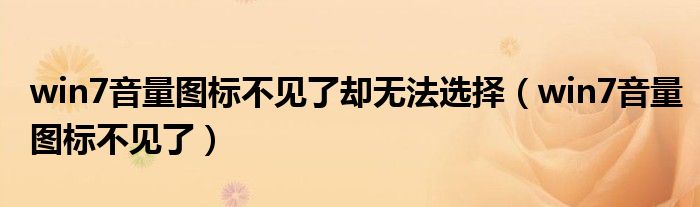 大家好,小飞来为大家解答以上问题,win7音量图标不见了却无法选择,win7音量图标不见了很多人还不知道,现在让我们一起来看看吧!