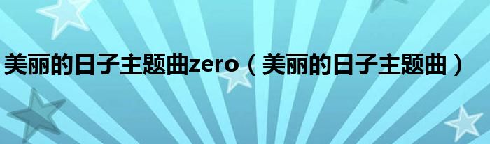 美丽的日子主题曲zero,美丽的日子主题曲这个很多人还不知道,小飞来为大家解答以上的问题。现在让我们一起来看看吧!