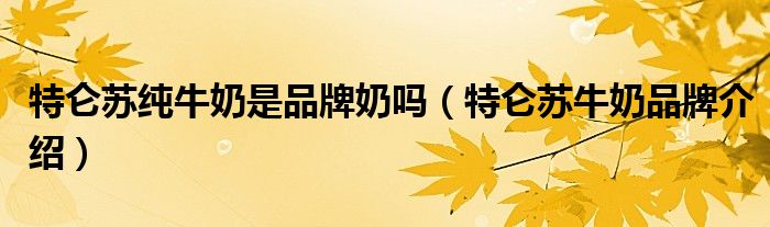 大家好,小源来为大家解答以上问题。特仑苏纯牛奶是品牌奶吗,特仑苏牛奶品牌介绍很多人还不知道,现在让我们一起来看看吧!