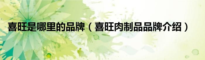 大家好,小源来为大家解答以上问题。喜旺是哪里的品牌,喜旺肉制品品牌介绍很多人还不知道,现在让我们一起来看看吧!
