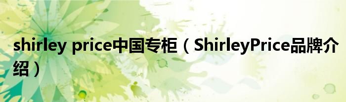 大家好,小源来为大家解答以上问题。shirley price中国专柜,ShirleyPrice品牌介绍很多人还不知道,现在让我们一起来看看吧!