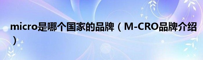 大家好,小源来为大家解答以上问题。micro是哪个国家的品牌,M-CRO品牌介绍很多人还不知道,现在让我们一起来看看吧!