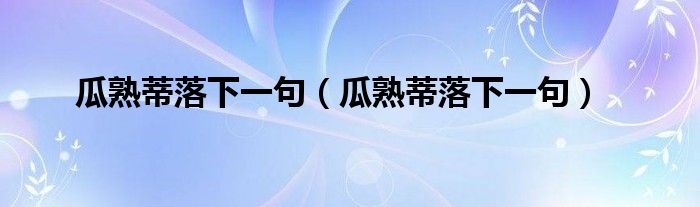 瓜熟蒂落下一句,瓜熟蒂落下一句这个很多人还不知道,小飞来为大家解答以上的问题。现在让我们一起来看看吧!