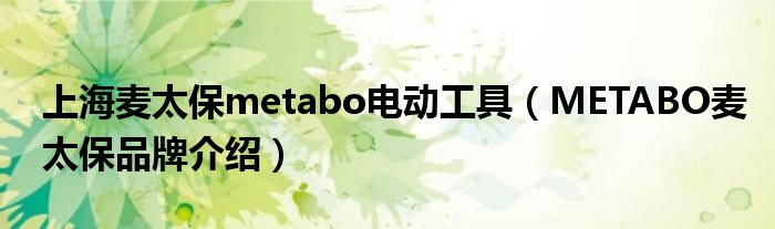 大家好,小源来为大家解答以上问题。上海麦太保metabo电动工具,METABO麦太保品牌介绍很多人还不知道,现在让我们一起来看看吧!