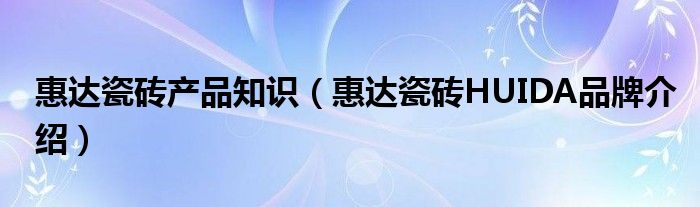 大家好,小源来为大家解答以上问题。惠达瓷砖产品知识,惠达瓷砖HUIDA品牌介绍很多人还不知道,现在让我们一起来看看吧!