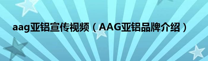 大家好,小源来为大家解答以上问题。aag亚铝宣传视频,AAG亚铝品牌介绍很多人还不知道,现在让我们一起来看看吧!