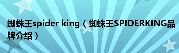 大家好,小源来为大家解答以上问题。蜘蛛王spider king,蜘蛛王SPIDERKING品牌介绍很多人还不知道,现在让我们一起来看看吧!