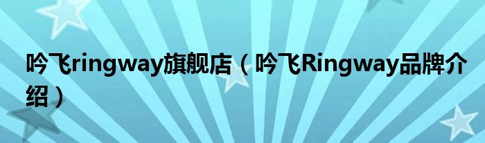大家好,小源来为大家解答以上问题。吟飞ringway旗舰店,吟飞Ringway品牌介绍很多人还不知道,现在让我们一起来看看吧!