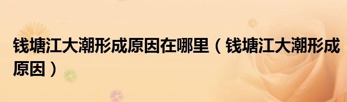 钱塘江大潮形成原因在哪里,钱塘江大潮形成原因这个很多人还不知道,小飞来为大家解答以上的问题。现在让我们一起来看看吧!