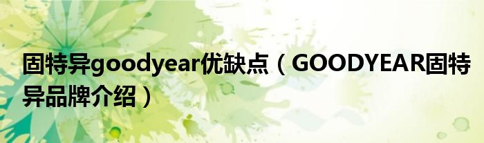 固特异goodyear优缺点(GOODYEAR固特异品牌介绍)