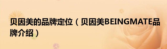 大家好,小源来为大家解答以上问题。贝因美的品牌定位,贝因美BEINGMATE品牌介绍很多人还不知道,现在让我们一起来看看吧!