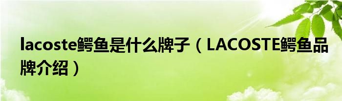大家好,小源来为大家解答以上问题。lacoste鳄鱼是什么牌子,LACOSTE鳄鱼品牌介绍很多人还不知道,现在让我们一起来看看吧!
