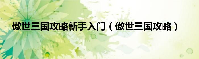 傲世三国攻略新手入门,傲世三国攻略很多人还不知道,乐乐来为大家解答以上问题,现在让我们一起来看看吧!