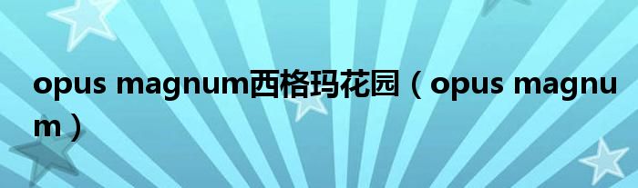opus magnum西格玛花园,opus magnum很多人还不知道,乐乐来为大家解答以上问题,现在让我们一起来看看吧!
