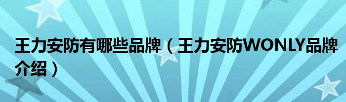 大家好,小源来为大家解答以上问题。王力安防有哪些品牌,王力安防WONLY品牌介绍很多人还不知道,现在让我们一起来看看吧!