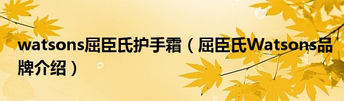 大家好,小源来为大家解答以上问题。watsons屈臣氏护手霜,屈臣氏Watsons品牌介绍很多人还不知道,现在让我们一起来看看吧!