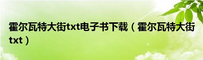 大家好,小飞来为大家解答以上的问题。霍尔瓦特大街txt电子书下载,霍尔瓦特大街 txt这个很多人还不知道,现在让我们一起来看看吧!