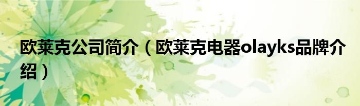 大家好,小源来为大家解答以上问题。欧莱克公司简介,欧莱克电器olayks品牌介绍很多人还不知道,现在让我们一起来看看吧!