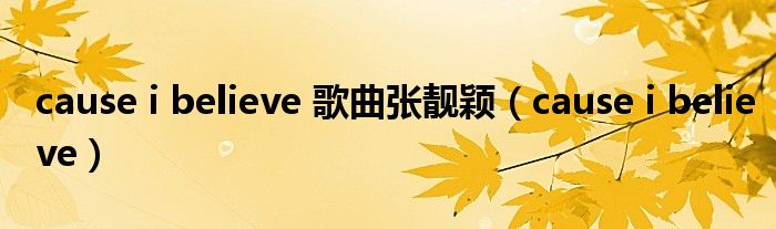 cause i believe 歌曲张靓颖,cause i believe这个很多人还不知道,小飞来为大家解答以上的问题。现在让我们一起来看看吧!