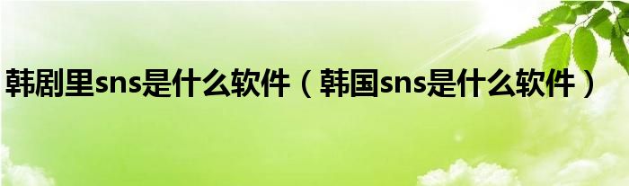 韩剧里sns是什么软件(韩国sns是什么软件)