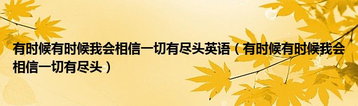 有时候有时候我会相信一切有尽头英语,有时候有时候我会相信一切有尽头很多人还不知道,乐乐来为大家解答以上问题,现在让我们一起来看看吧!