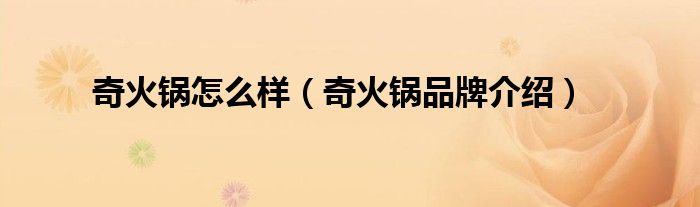 大家好,小源来为大家解答以上问题。奇火锅怎么样,奇火锅品牌介绍很多人还不知道,现在让我们一起来看看吧!