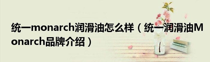 大家好,小源来为大家解答以上问题。统一monarch润滑油怎么样,统一润滑油Monarch品牌介绍很多人还不知道,现在让我们一起来看看吧!