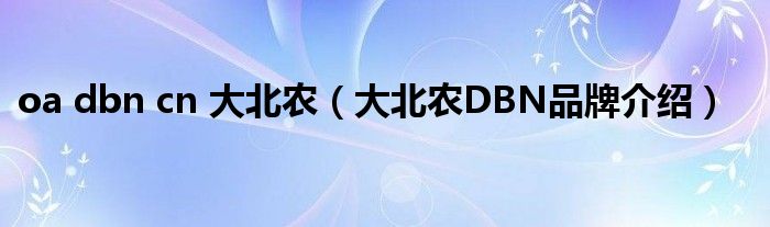 大家好,小源来为大家解答以上问题。oa dbn cn 大北农,大北农DBN品牌介绍很多人还不知道,现在让我们一起来看看吧!