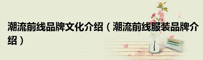 大家好,小源来为大家解答以上问题。潮流前线品牌文化介绍,潮流前线服装品牌介绍很多人还不知道,现在让我们一起来看看吧!