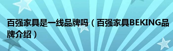 大家好,小源来为大家解答以上问题。百强家具是一线品牌吗,百强家具BEKING品牌介绍很多人还不知道,现在让我们一起来看看吧!