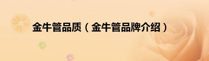 大家好,小源来为大家解答以上问题。金牛管品质,金牛管品牌介绍很多人还不知道,现在让我们一起来看看吧!