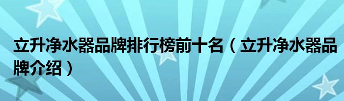 大家好,小源来为大家解答以上问题。立升净水器品牌排行榜前十名,立升净水器品牌介绍很多人还不知道,现在让我们一起来看看吧!