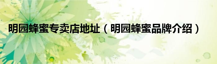 大家好,小源来为大家解答以上问题。明园蜂蜜专卖店地址,明园蜂蜜品牌介绍很多人还不知道,现在让我们一起来看看吧!
