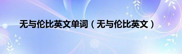 大家好,小飞来为大家解答以上的问题。无与伦比英文单词,无与伦比英文这个很多人还不知道,现在让我们一起来看看吧!