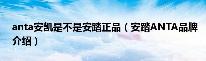 大家好,小源来为大家解答以上问题。anta安凯是不是安踏正品,安踏ANTA品牌介绍很多人还不知道,现在让我们一起来看看吧!