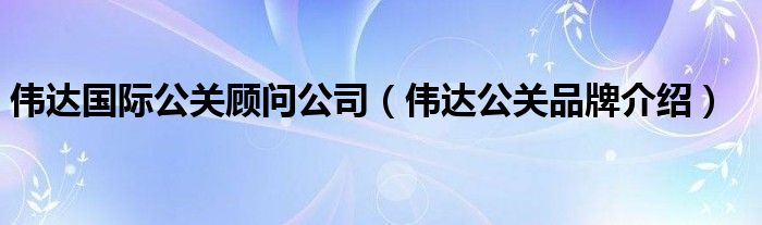 大家好,小源来为大家解答以上问题。伟达国际公关顾问公司,伟达公关品牌介绍很多人还不知道,现在让我们一起来看看吧!
