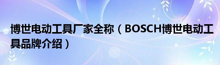 大家好,小源来为大家解答以上问题。博世电动工具厂家全称,BOSCH博世电动工具品牌介绍很多人还不知道,现在让我们一起来看看吧!