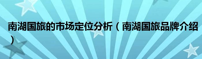 大家好,小源来为大家解答以上问题。南湖国旅的市场定位分析,南湖国旅品牌介绍很多人还不知道,现在让我们一起来看看吧!