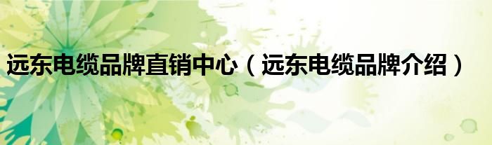 大家好,小源来为大家解答以上问题。远东电缆品牌直销中心,远东电缆品牌介绍很多人还不知道,现在让我们一起来看看吧!